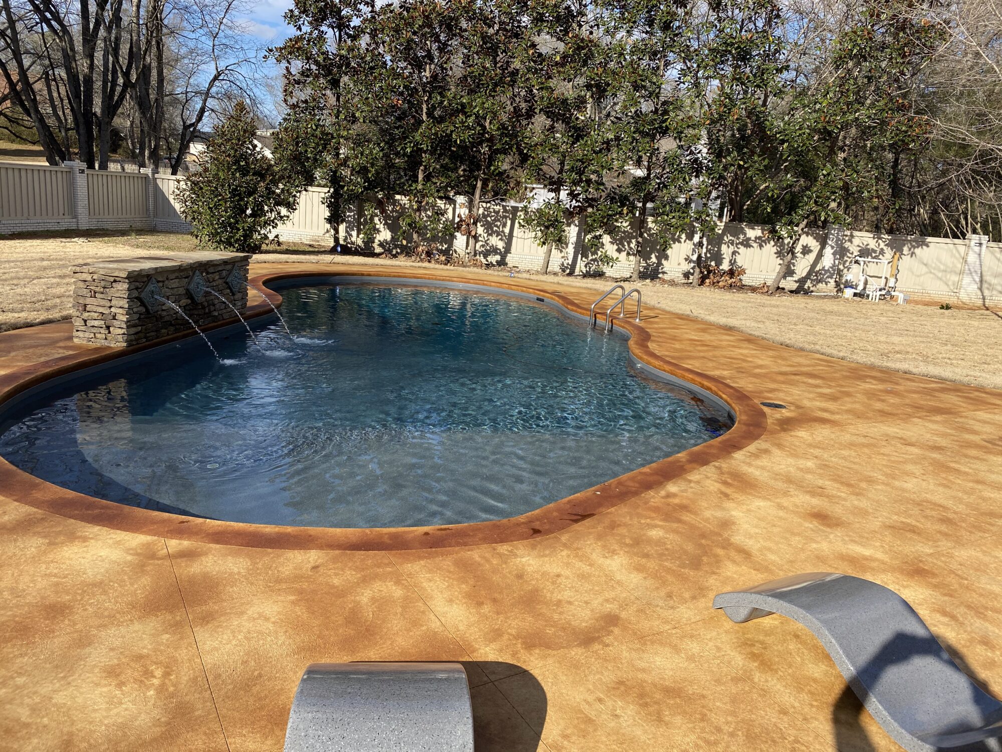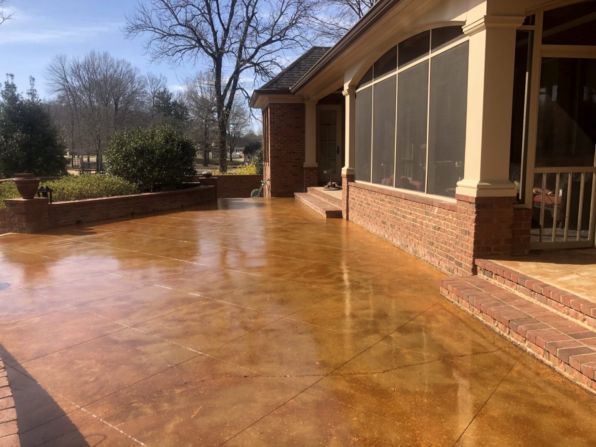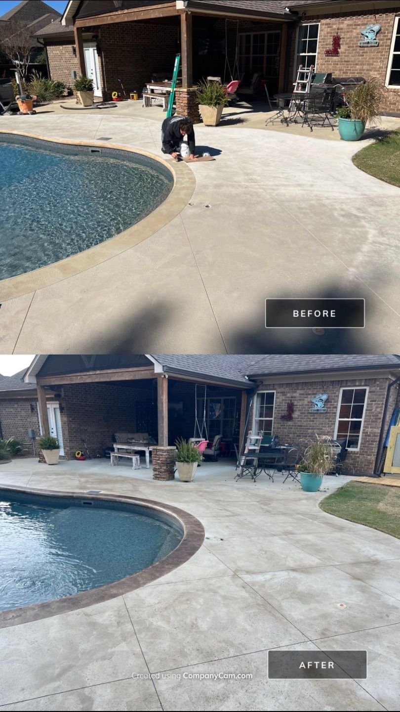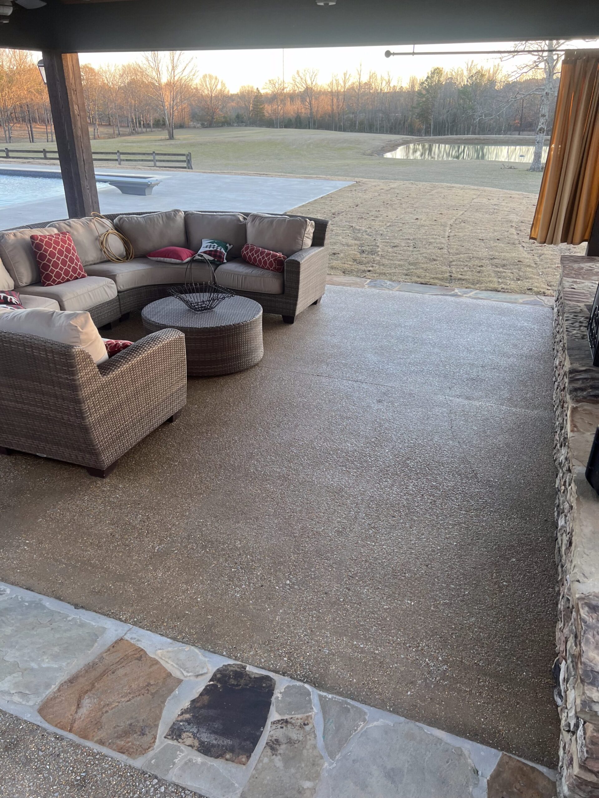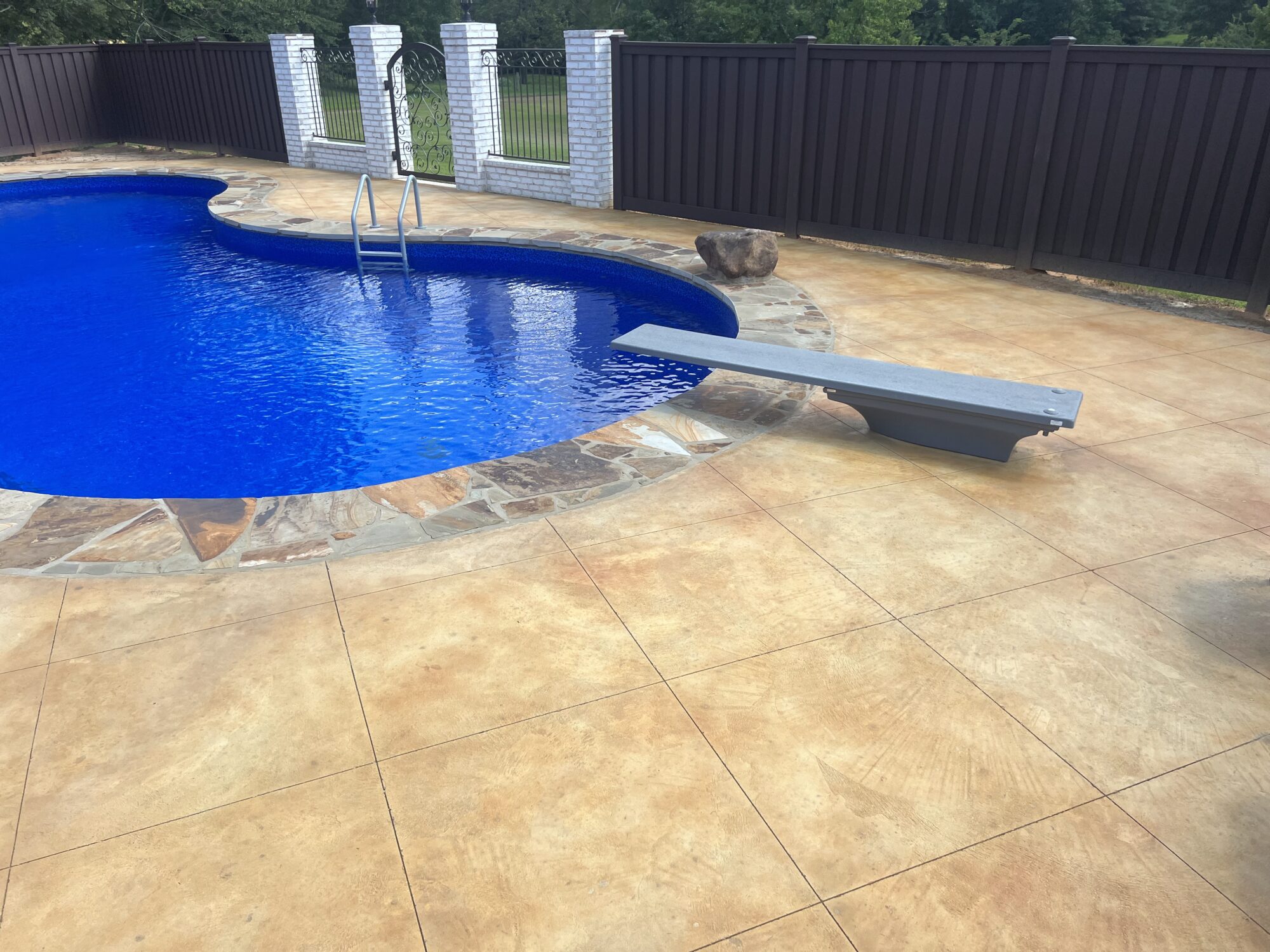 Transform your backyard into a luxury oasis. Browse our pool deck transformations to see the organic, earthy feel our acid-based chemical stains provide. We offer a beautiful range of color options, including rich tans, browns, terracottas, and soft blue-greens. Because our acid stain works with your concrete’s unique features to form a permanent bond, these luxurious finishes withstand the elements and will not break down from pool chlorine, ensuring a lifetime of beauty when properly maintained.