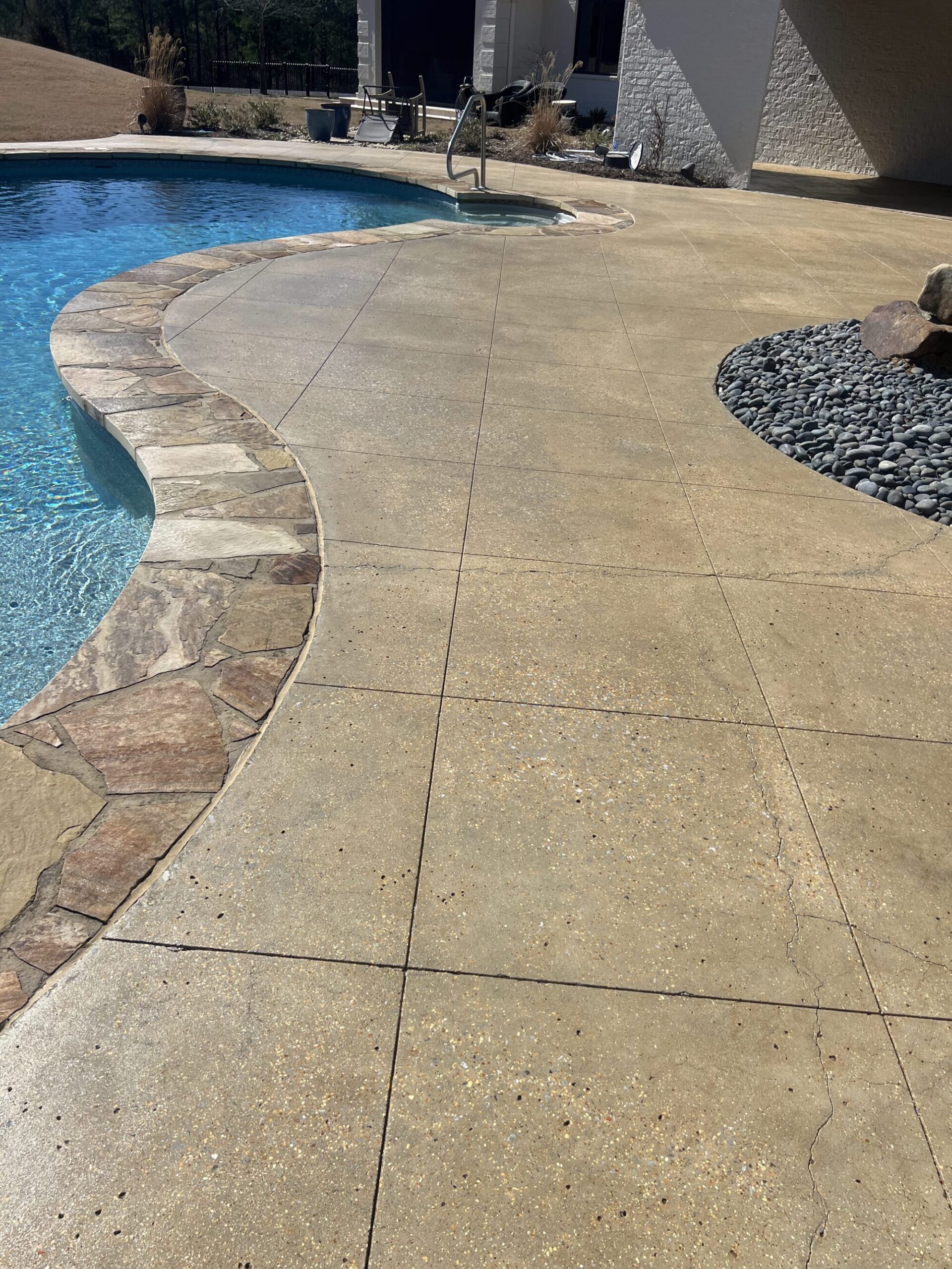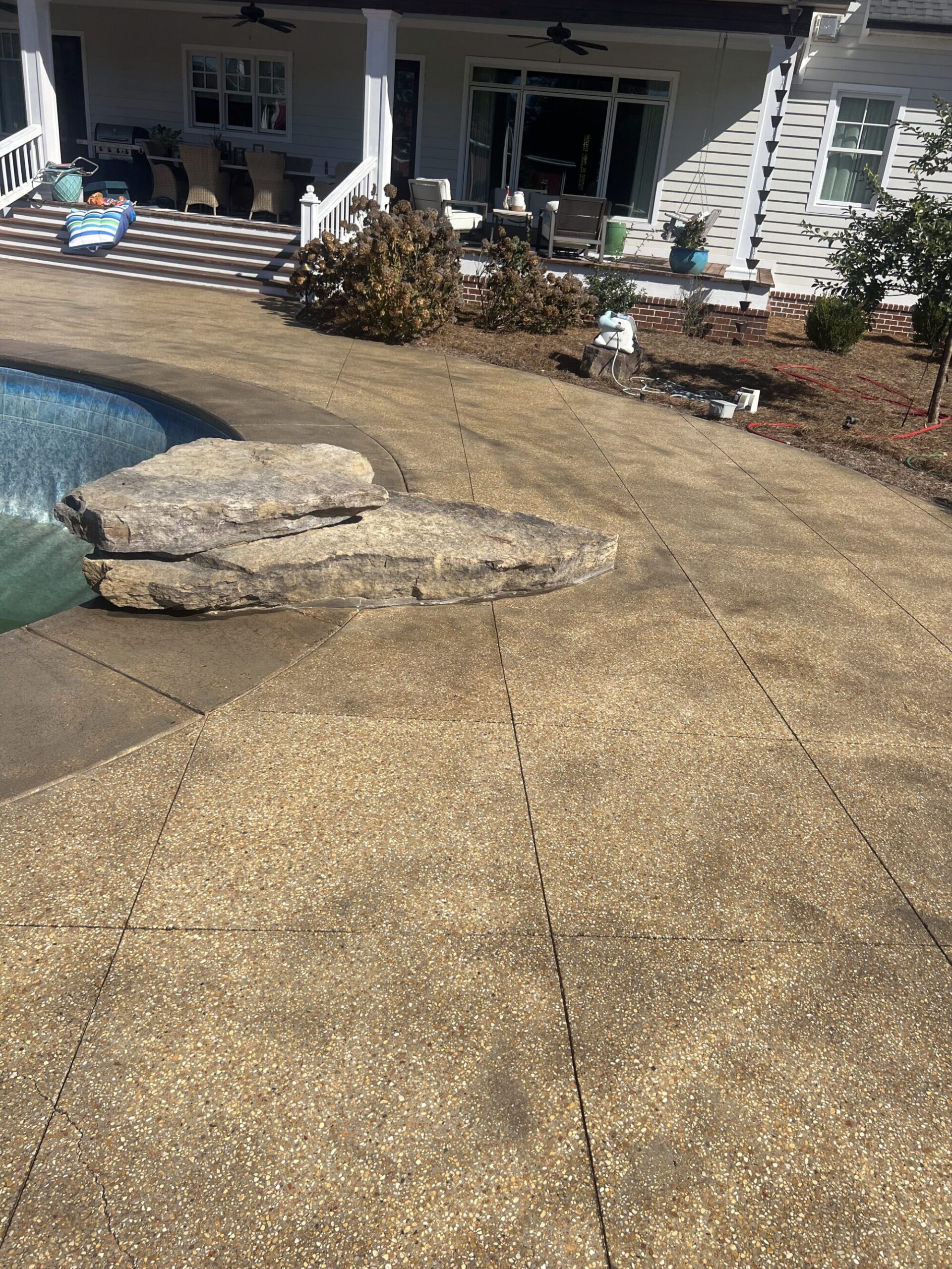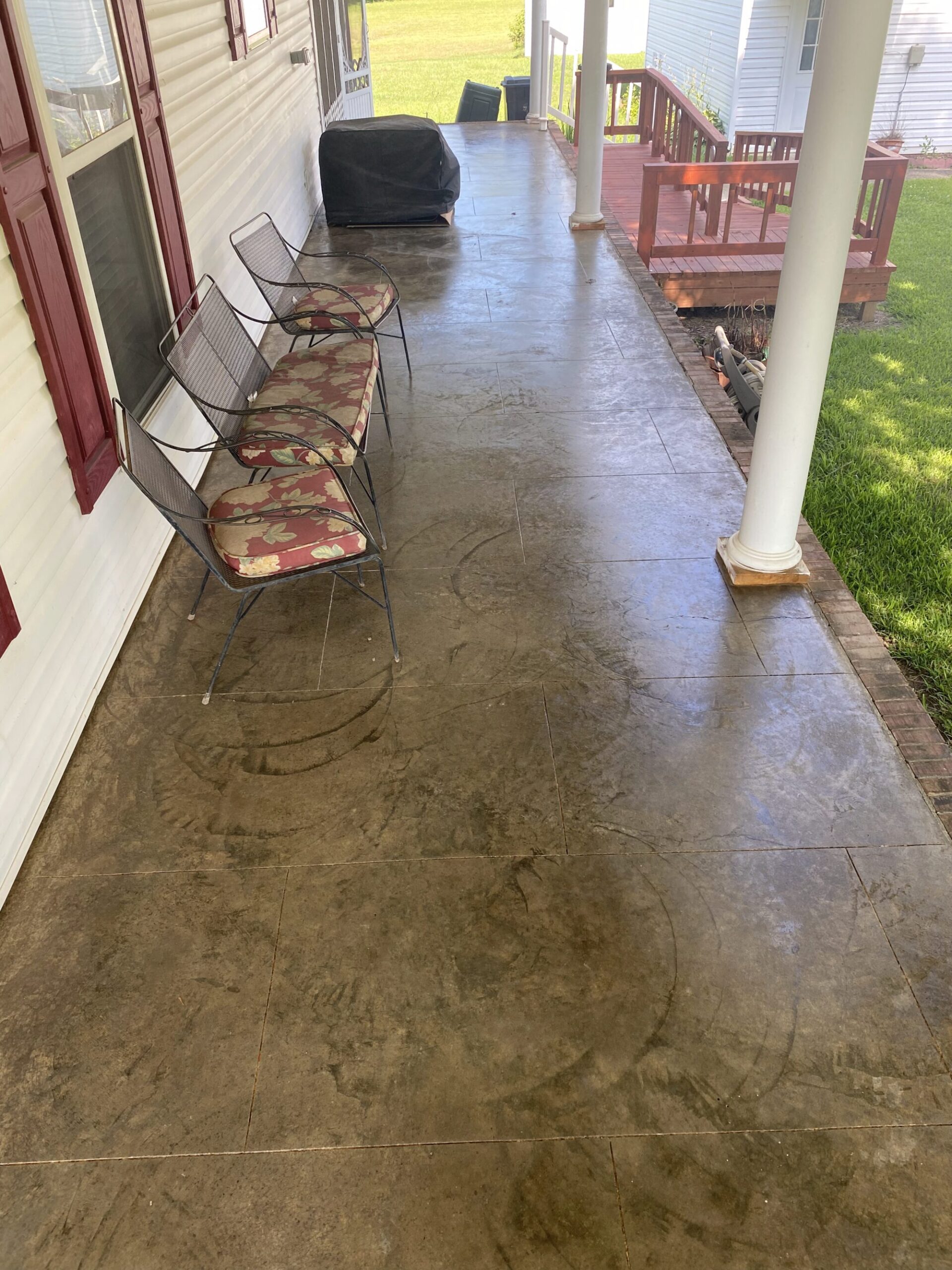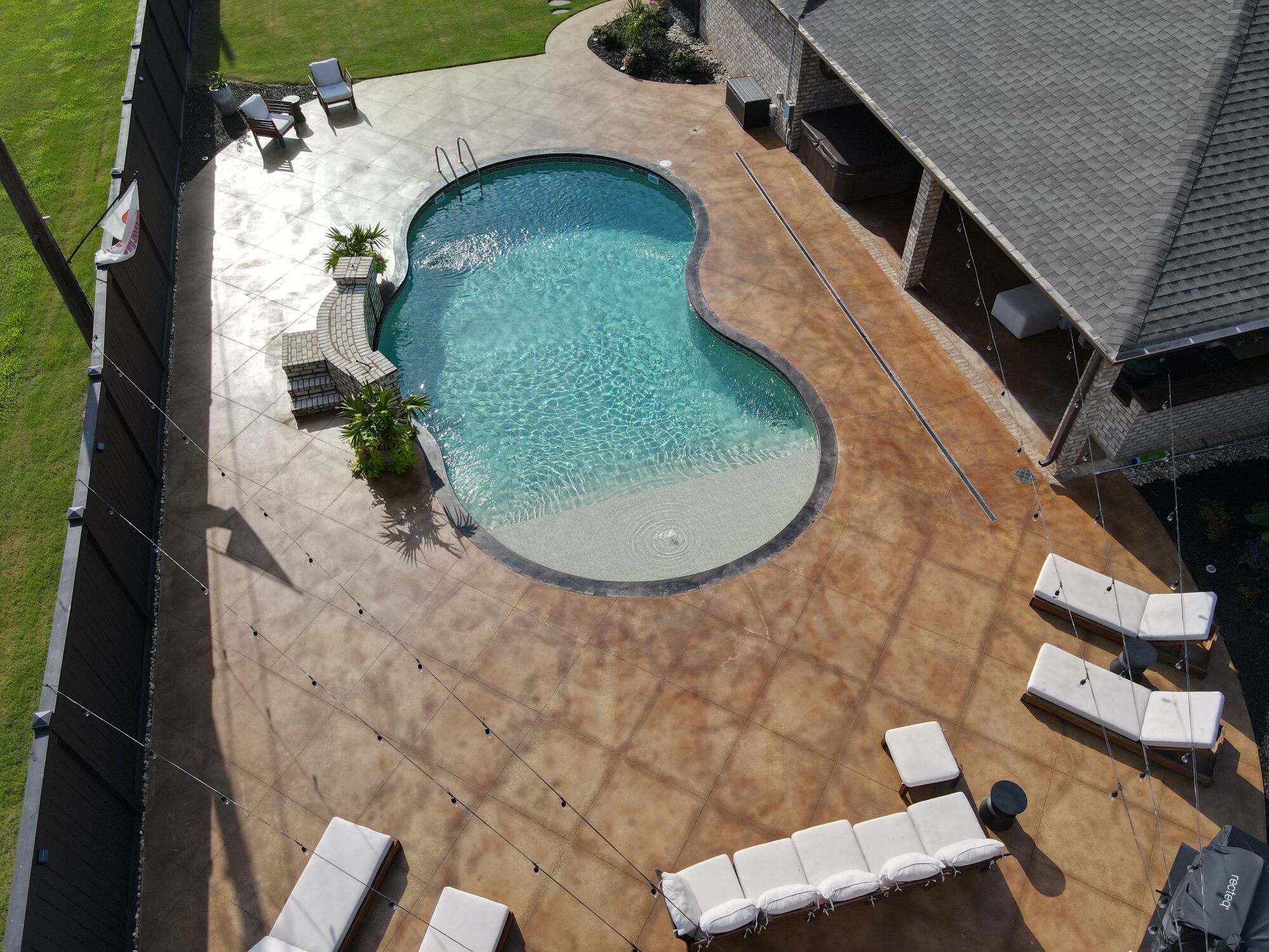 Transform your backyard into a luxury oasis. Browse our pool deck transformations to see the organic, earthy feel our acid-based chemical stains provide. We offer a beautiful range of color options, including rich tans, browns, terracottas, and soft blue-greens. Because our acid stain works with your concrete’s unique features to form a permanent bond, these luxurious finishes withstand the elements and will not break down from pool chlorine, ensuring a lifetime of beauty when properly maintained.