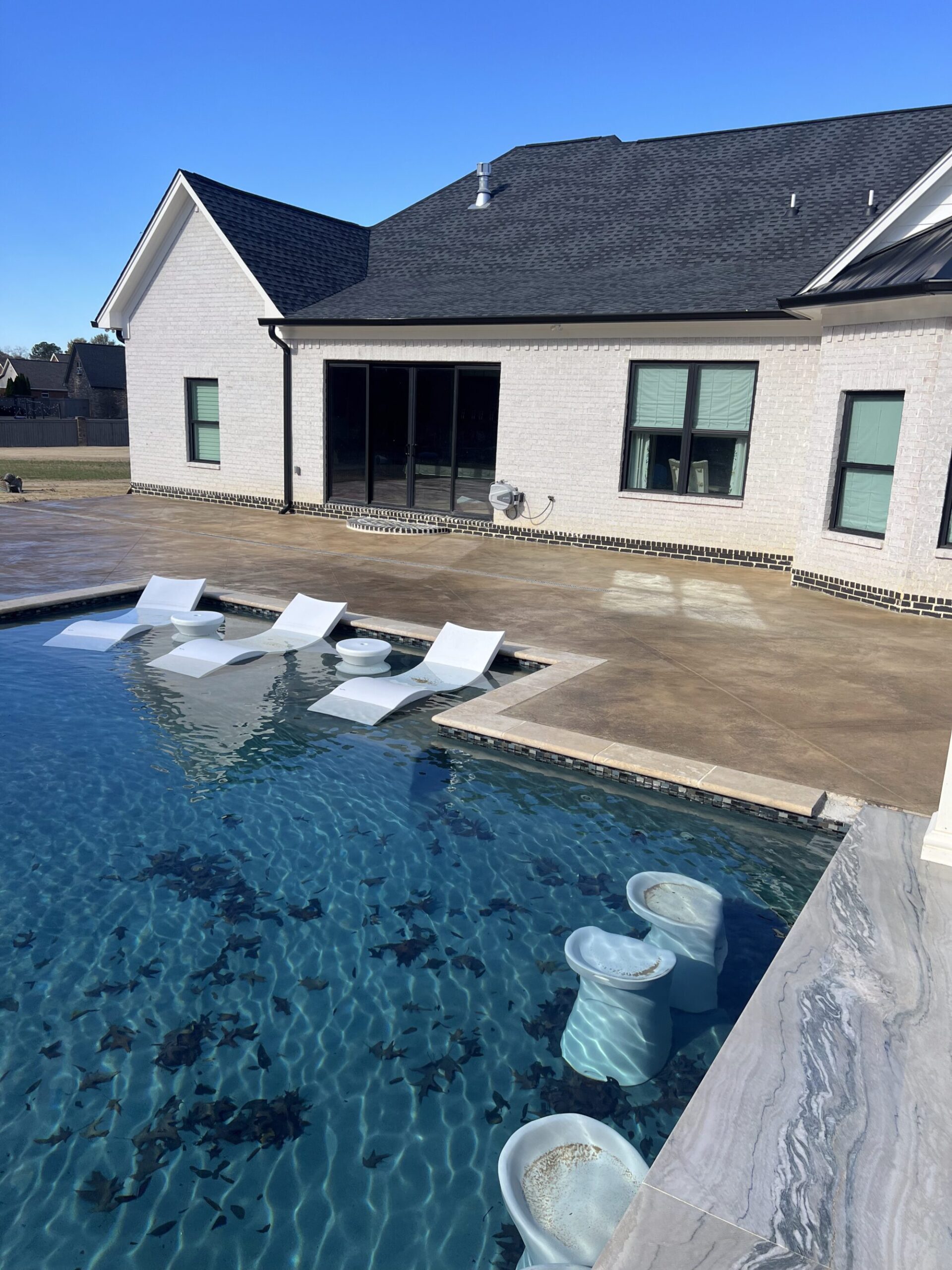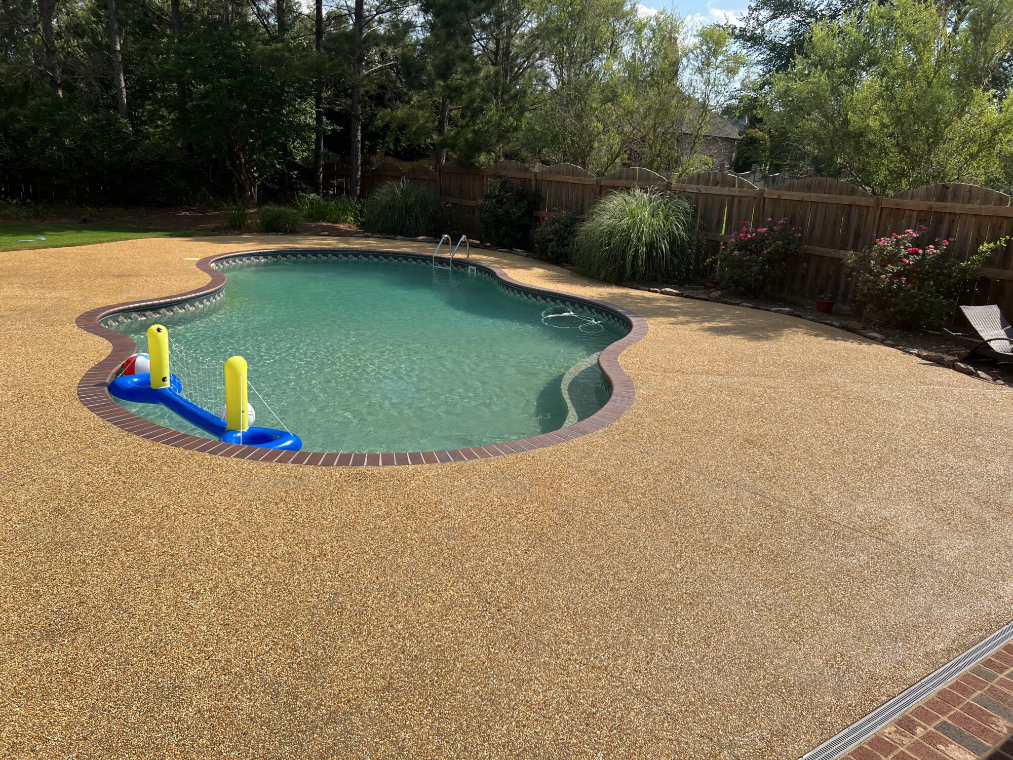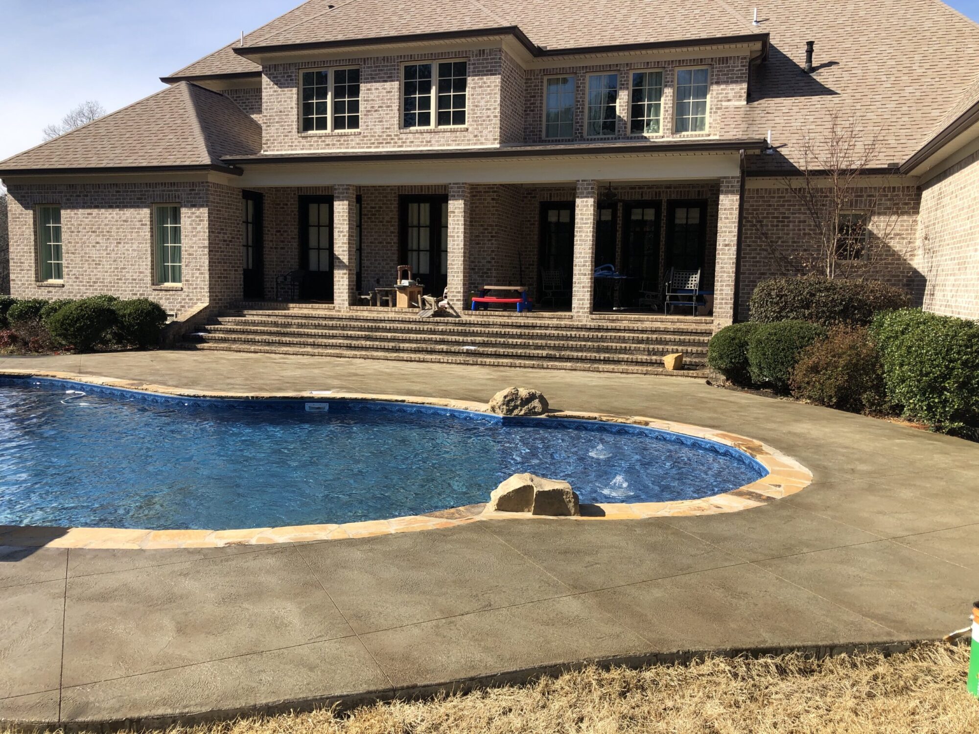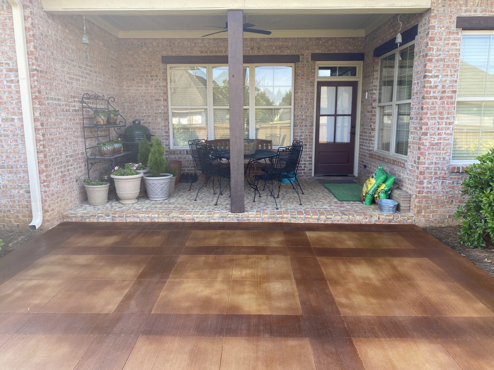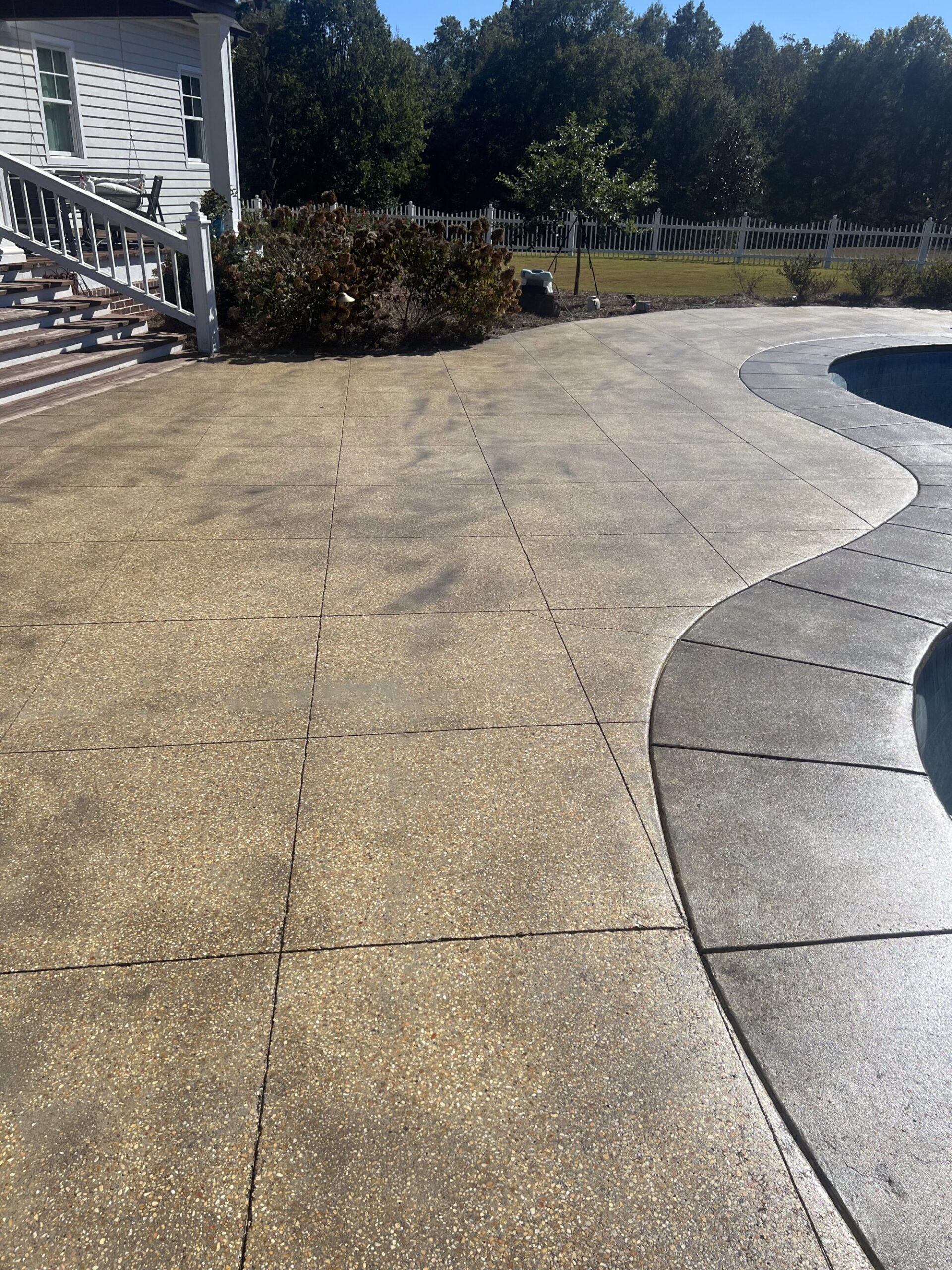 Transform your backyard into a luxury oasis. Browse our pool deck transformations to see the organic, earthy feel our acid-based chemical stains provide. We offer a beautiful range of color options, including rich tans, browns, terracottas, and soft blue-greens. Because our acid stain works with your concrete’s unique features to form a permanent bond, these luxurious finishes withstand the elements and will not break down from pool chlorine, ensuring a lifetime of beauty when properly maintained.