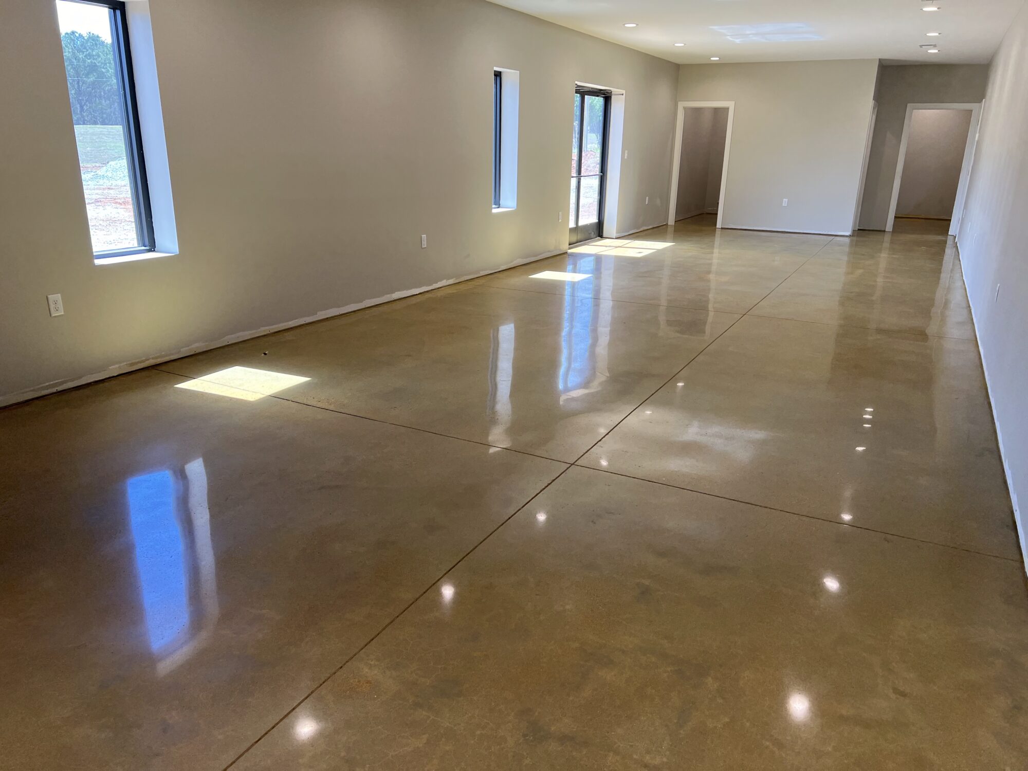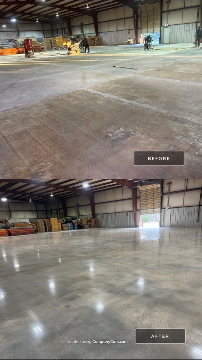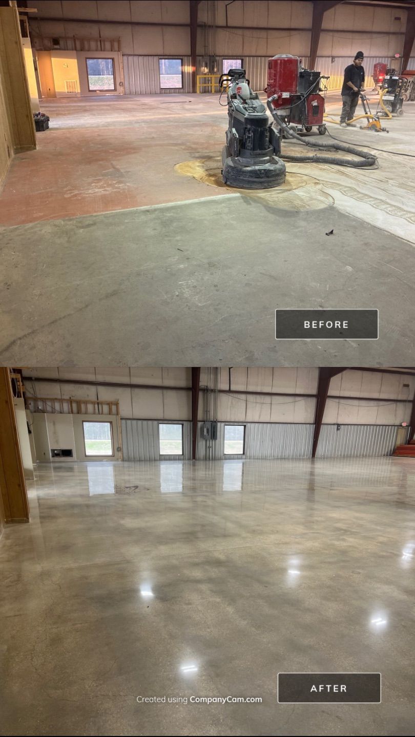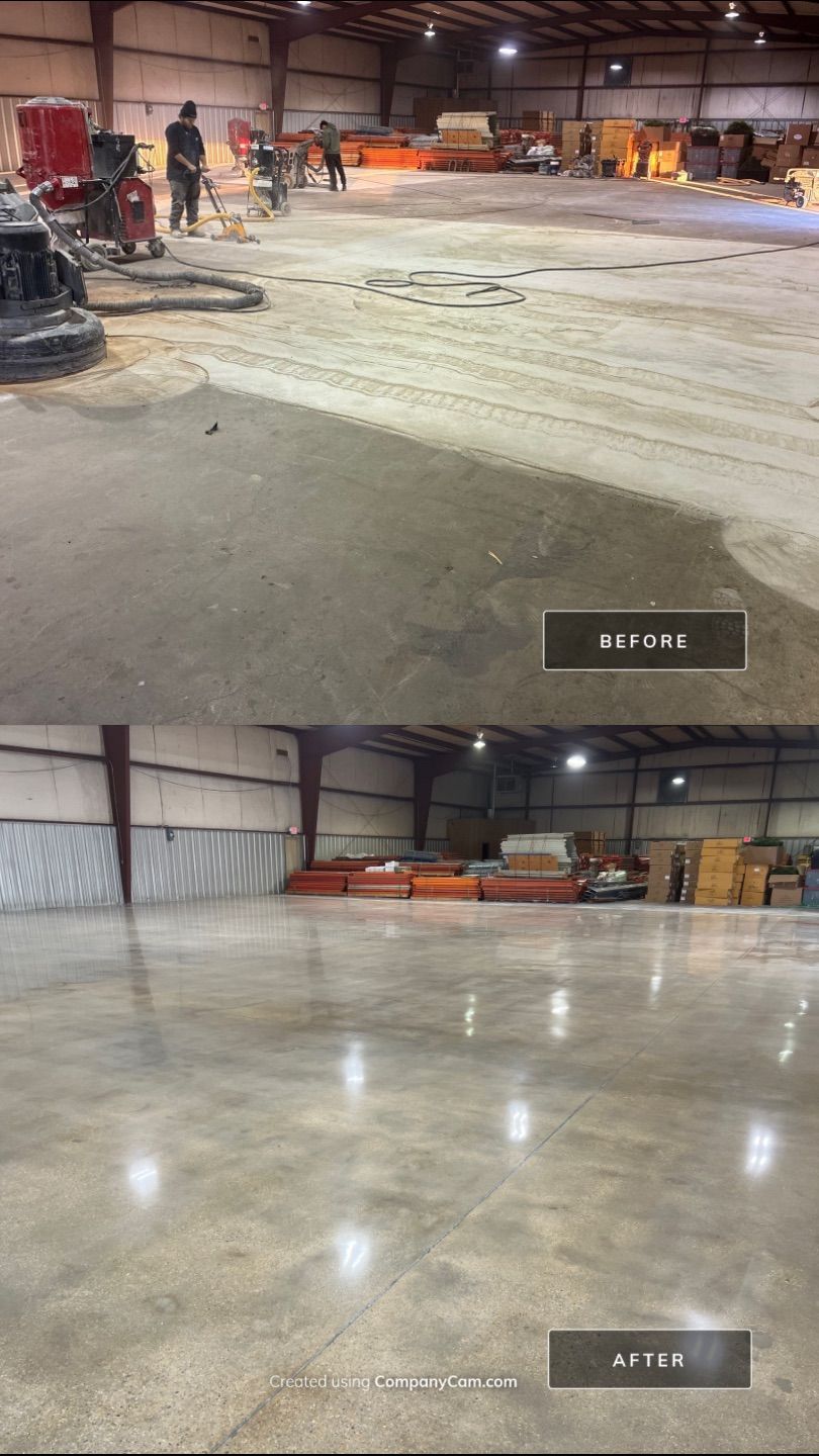 Experience the brilliance and durability of our diamond polished and diamond ground concrete floors. In this gallery, you will see how we use heavy mechanical machines and refining diamonds to grind new and old concrete to a flawless, high-shine finish. From modern residential homes to expansive retail stores and heavy-traffic warehouses, our polished concrete delivers incredible light reflectivity and a clean, hypoallergenic surface. Notice the custom details we can achieve, including decorative saw cuts, custom colors, and seamlessly embedded company logos.