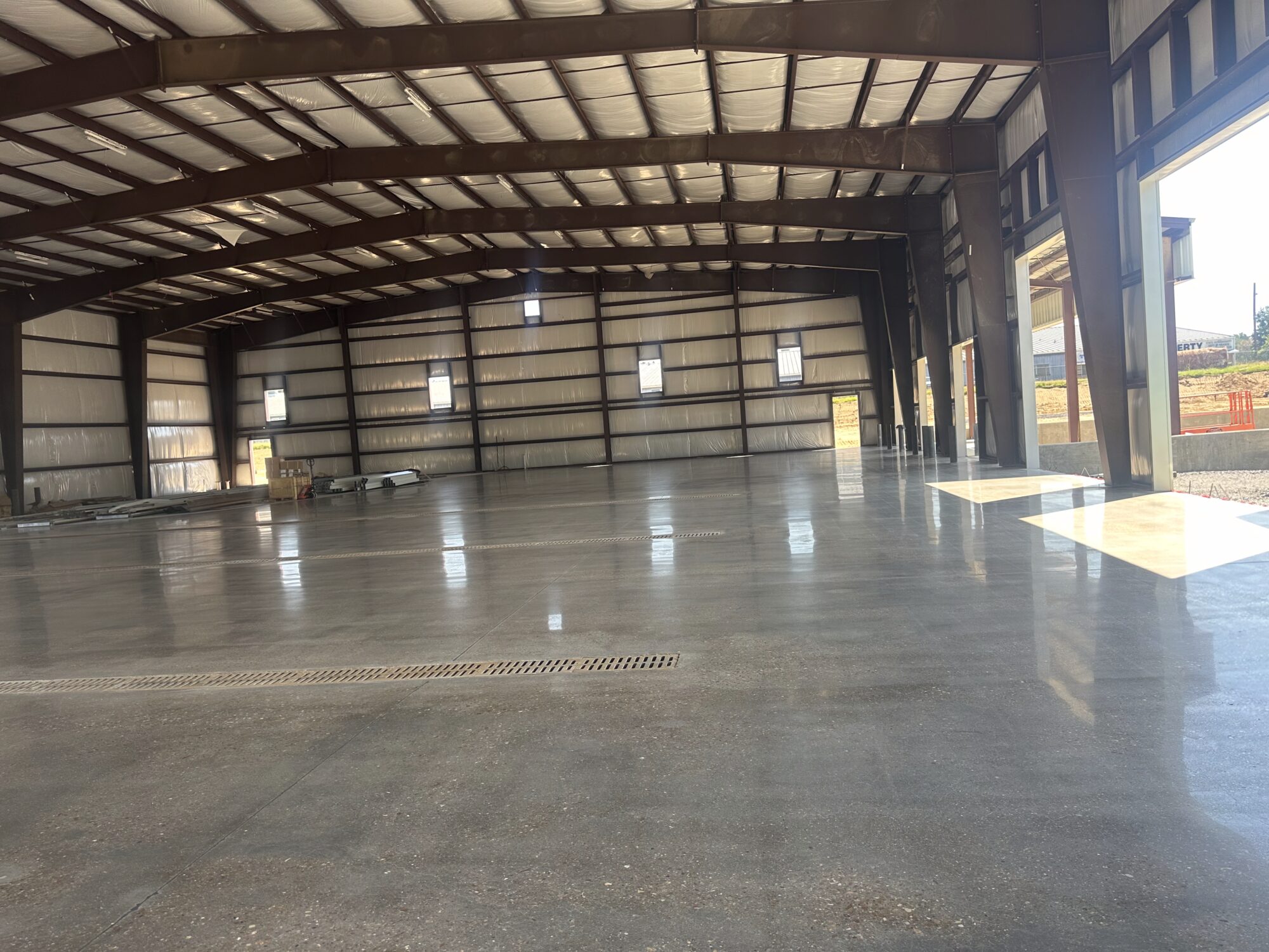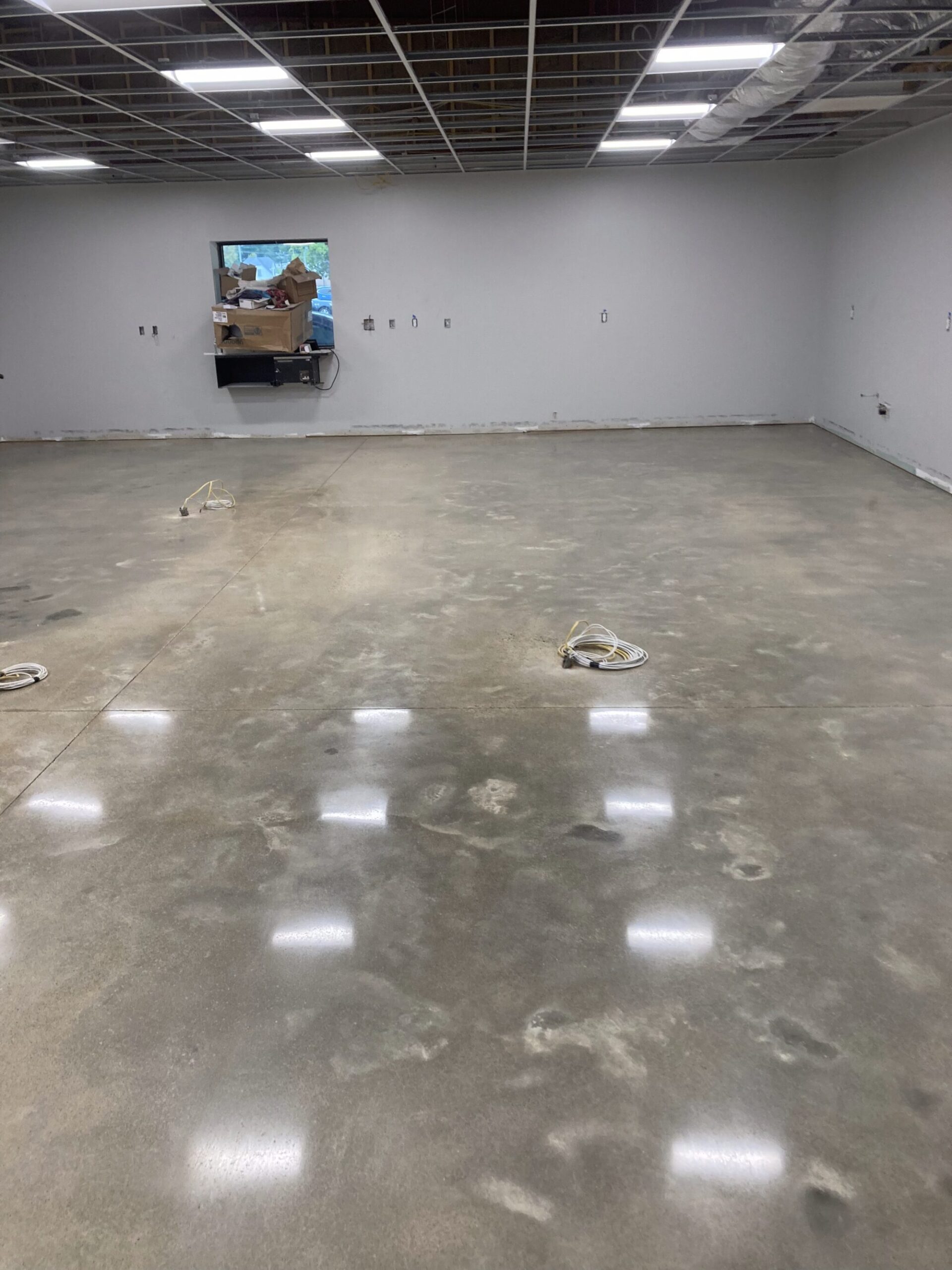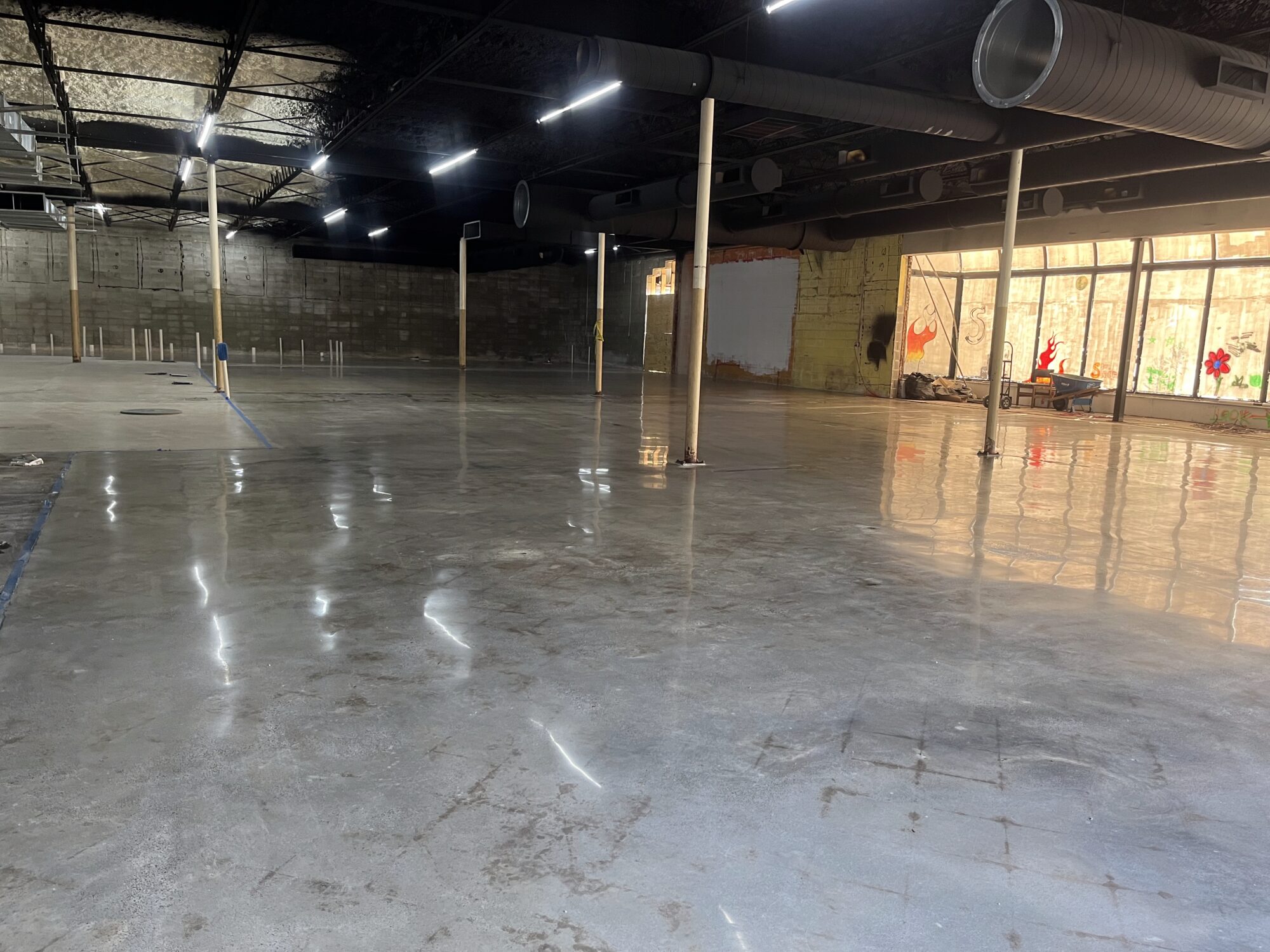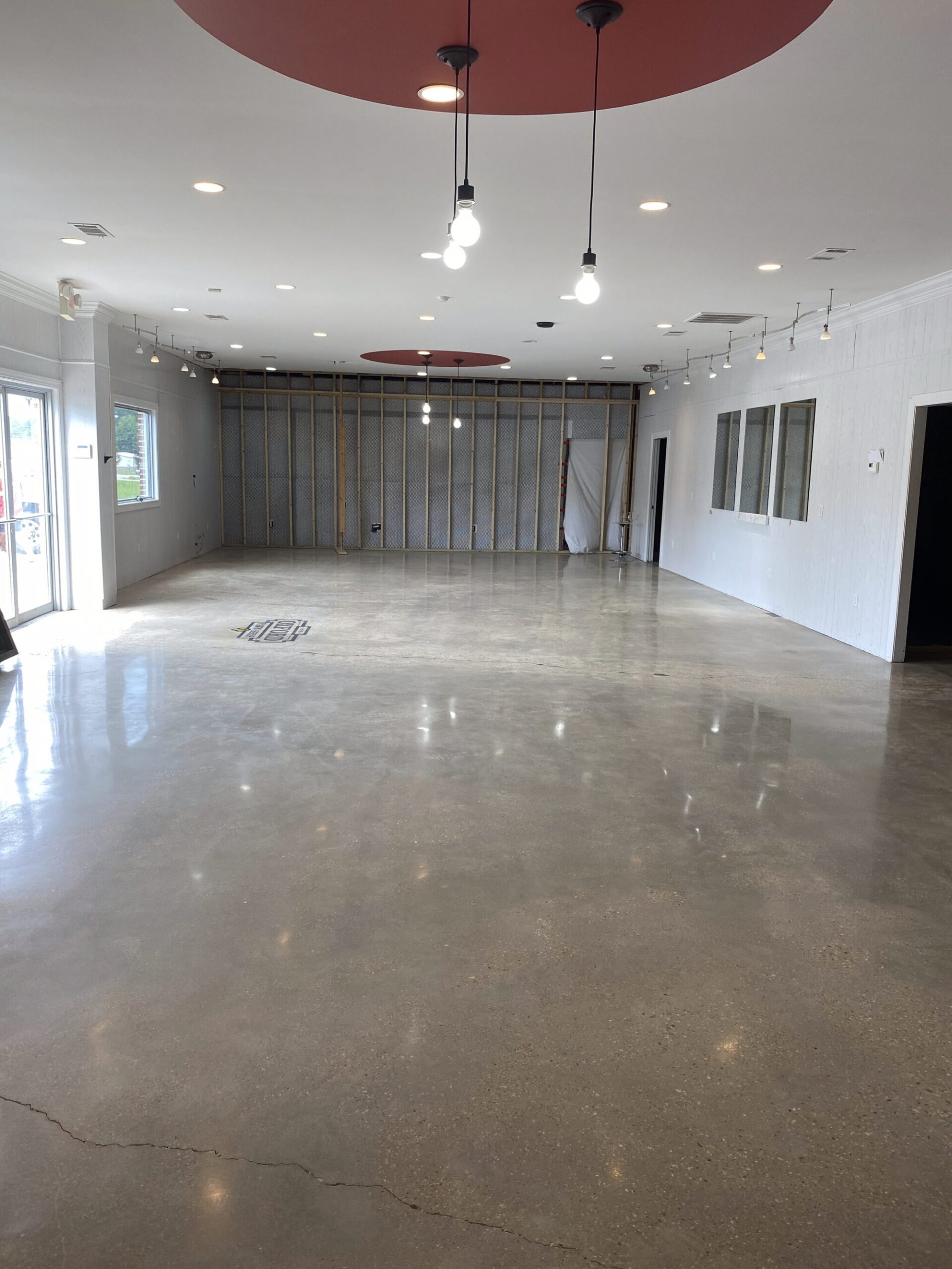 Experience the brilliance and durability of our diamond polished and diamond ground concrete floors. In this gallery, you will see how we use heavy mechanical machines and refining diamonds to grind new and old concrete to a flawless, high-shine finish. From modern residential homes to expansive retail stores and heavy-traffic warehouses, our polished concrete delivers incredible light reflectivity and a clean, hypoallergenic surface. Notice the custom details we can achieve, including decorative saw cuts, custom colors, and seamlessly embedded company logos.