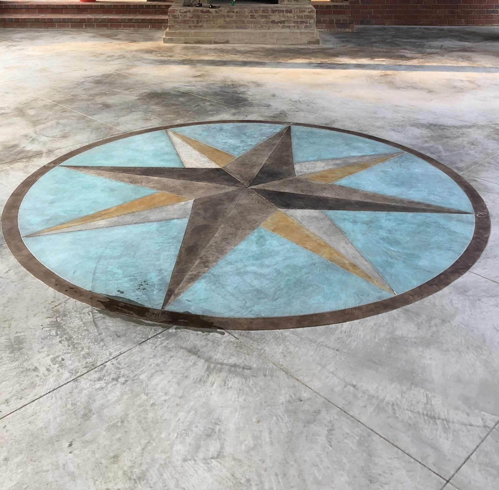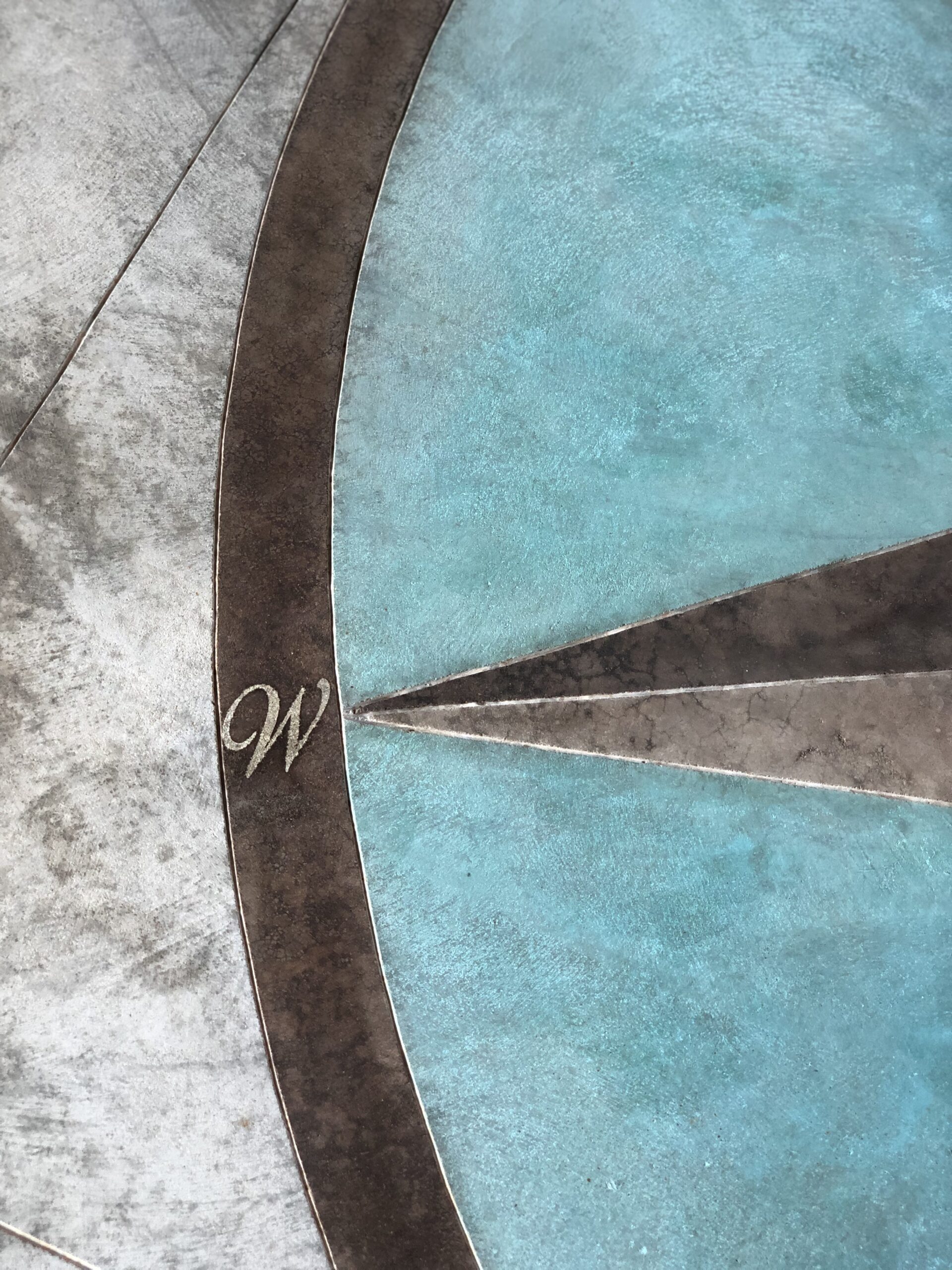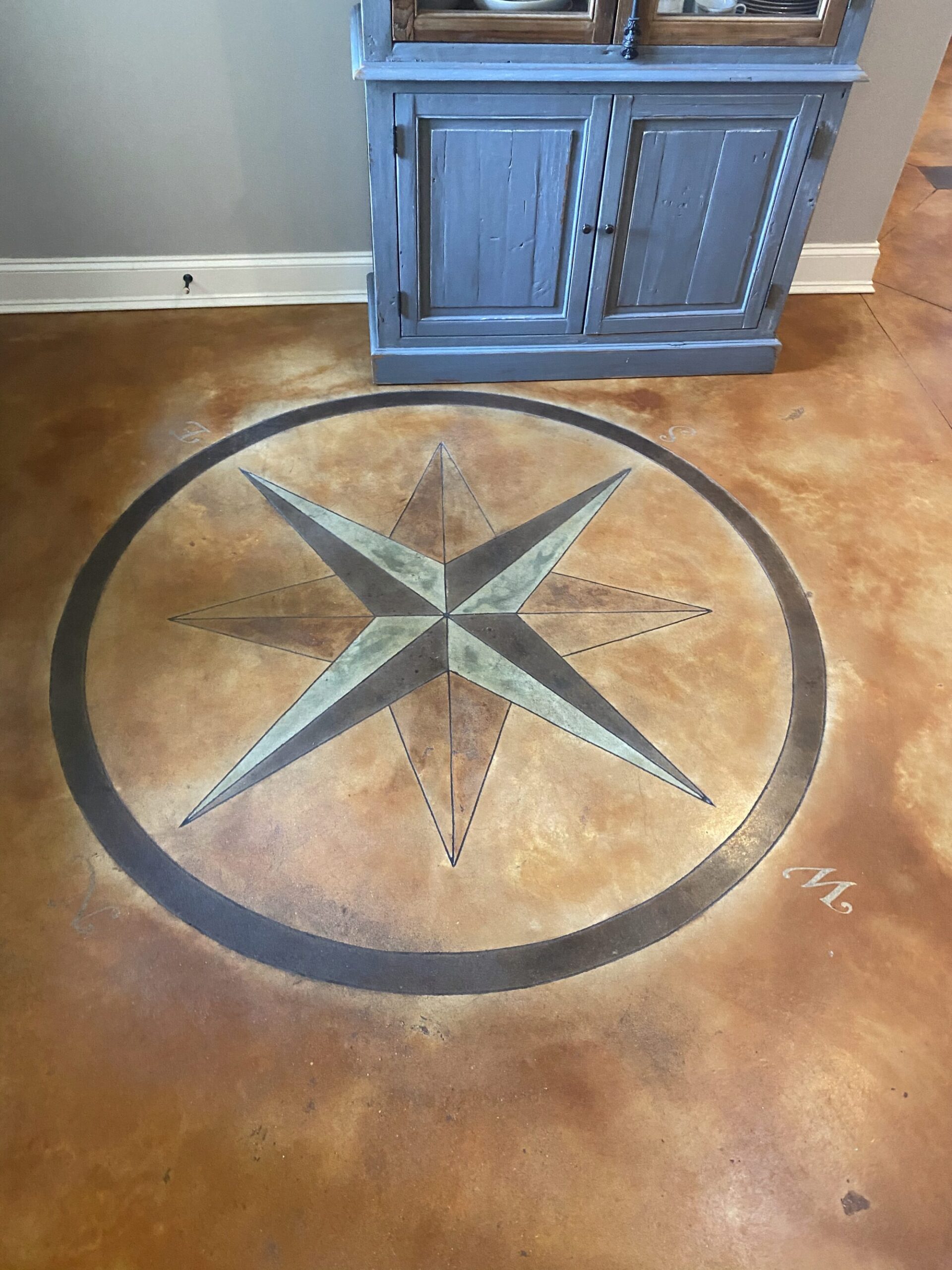 Discover the unmatched elegance of custom stained interior concrete. This gallery highlights the deep, rich tones and attractive, translucent marbling effects that our chemical acid stains create—a permanent, high-end look that porcelain or ceramic tiles simply cannot replicate. Perfect for custom homes or high-traffic commercial areas, our floors feature mostly earth tones, including beautiful terracotta and blue-green hues. Look closely to see the intricate custom patterns we can add using our specialized diamond grinding methods to make any room truly breathtaking.